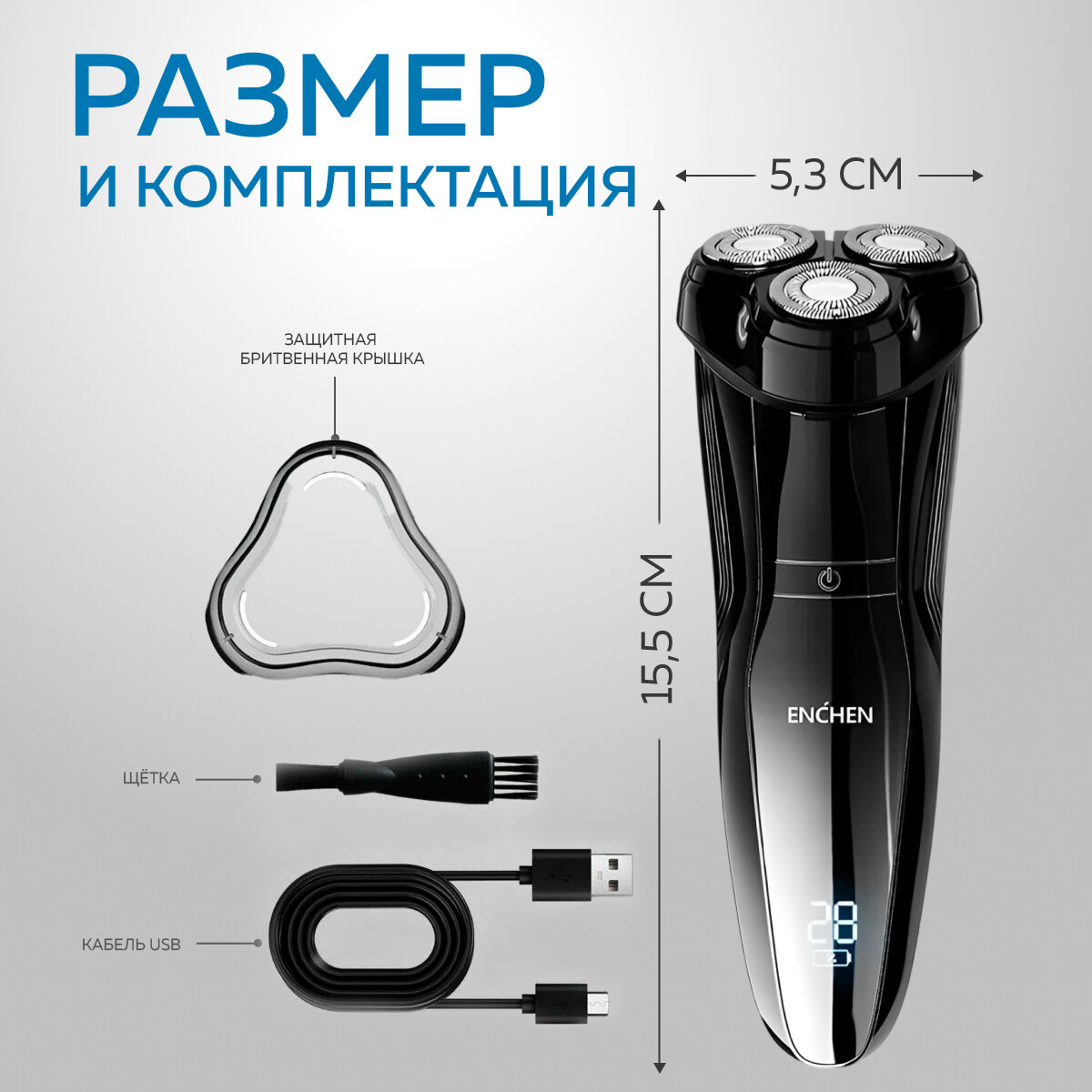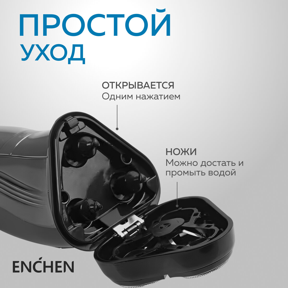 Электробритва Enchen Blackstone 3, роторная, 3 плавающие головки, Li-ion аккумулятор, IPX7 + дополнительная насадка