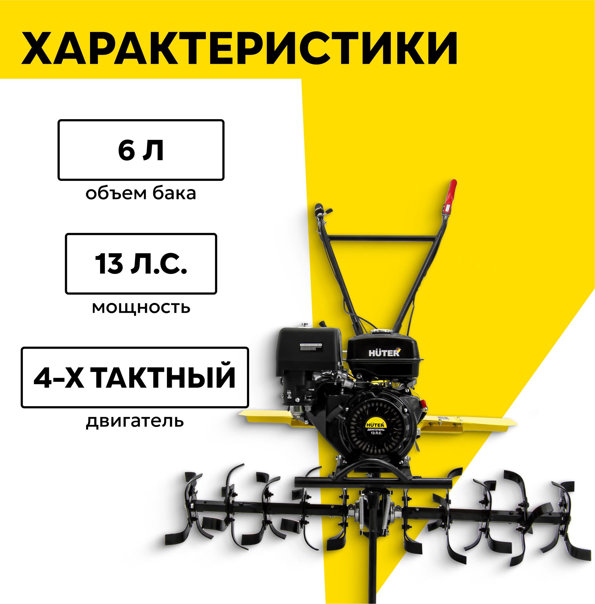 Сельскохозяйственная машина HUTER MK-13000P, 13 л. с, четырехтактный, бензин, бак – 6 л, ширина – 140 см интересное: