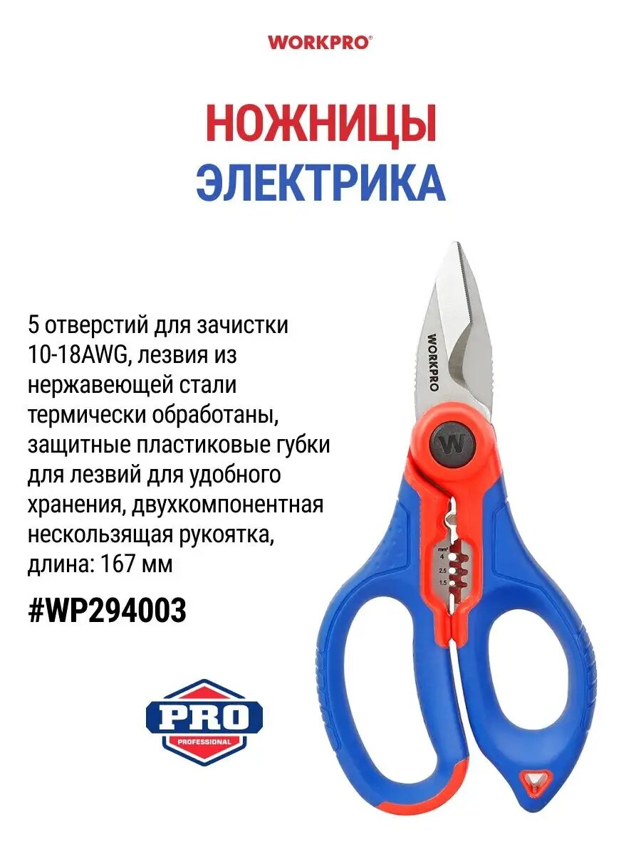 Ножницы для электрика 167 мм, WP294003, WORKPRO, цвет синий/красный интересное: