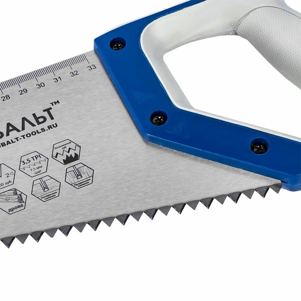 Ножовка по дереву кобальт 500 мм, шаг 7,5 мм / 3,5 TPI, закаленный зуб, 2D-заточка, быстрый грубый рез, 2-х комп. рукоятка