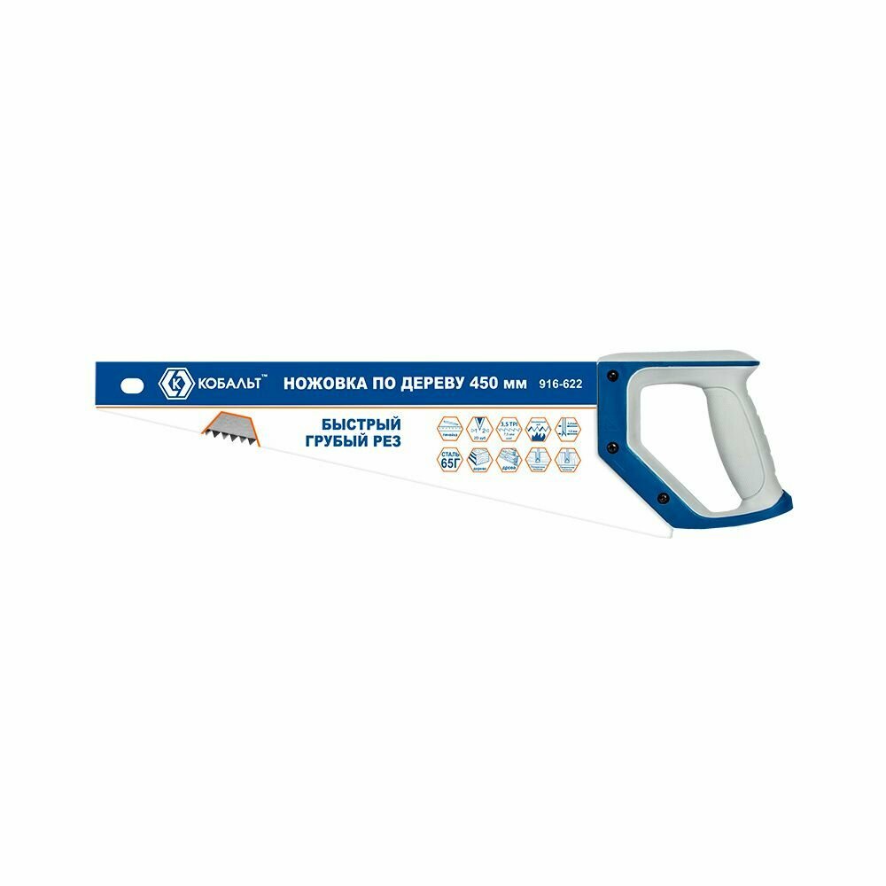 Ножовка по дереву кобальт 450 мм, шаг 7,5 мм / 3,5 TPI, закаленный зуб, 2D-заточка, быстрый грубый рез, 2-х комп. рукоятка (916-622), шт
