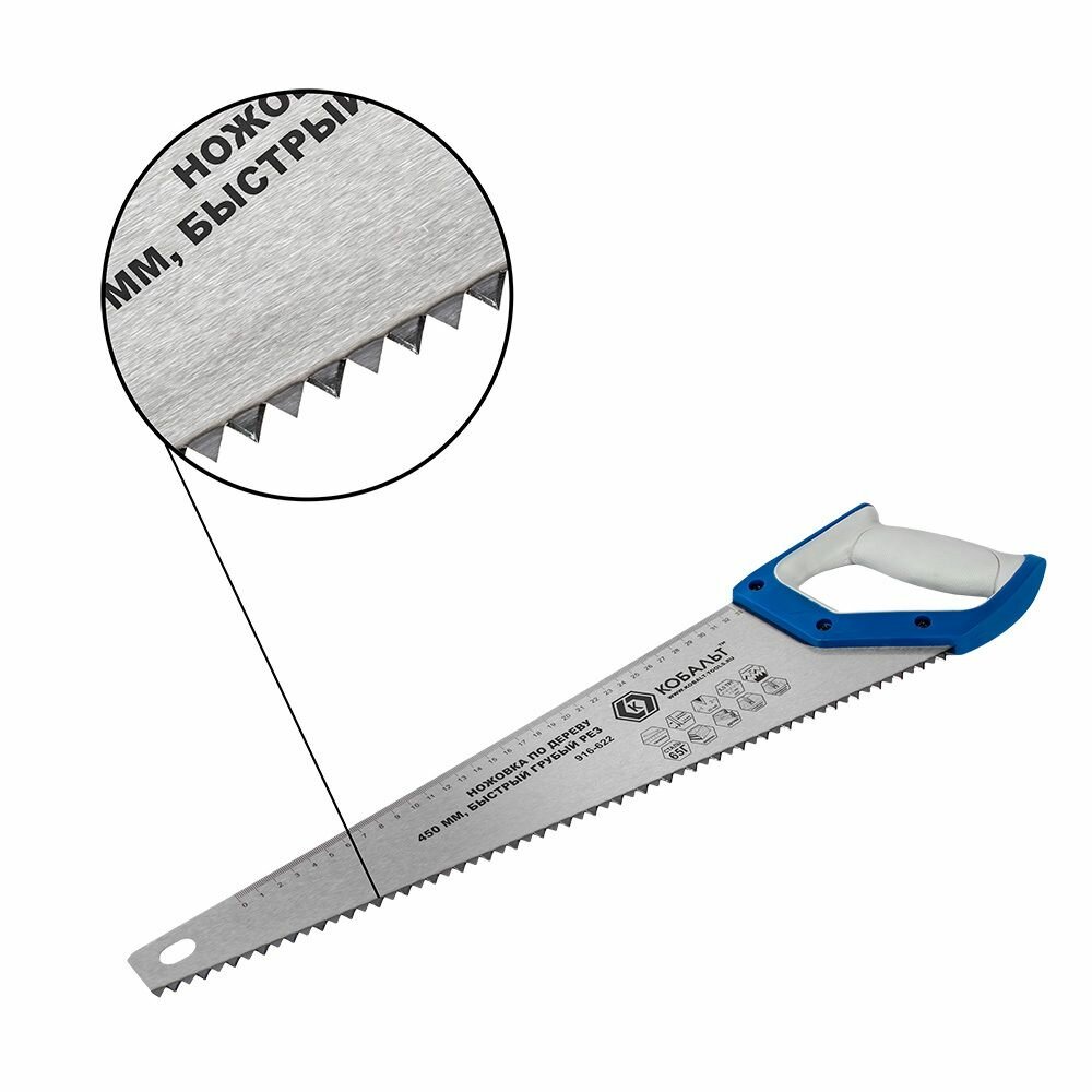 Ножовка по дереву с крупным шагом кобальт 450 мм шаг 7.5 мм 3.5 TPI