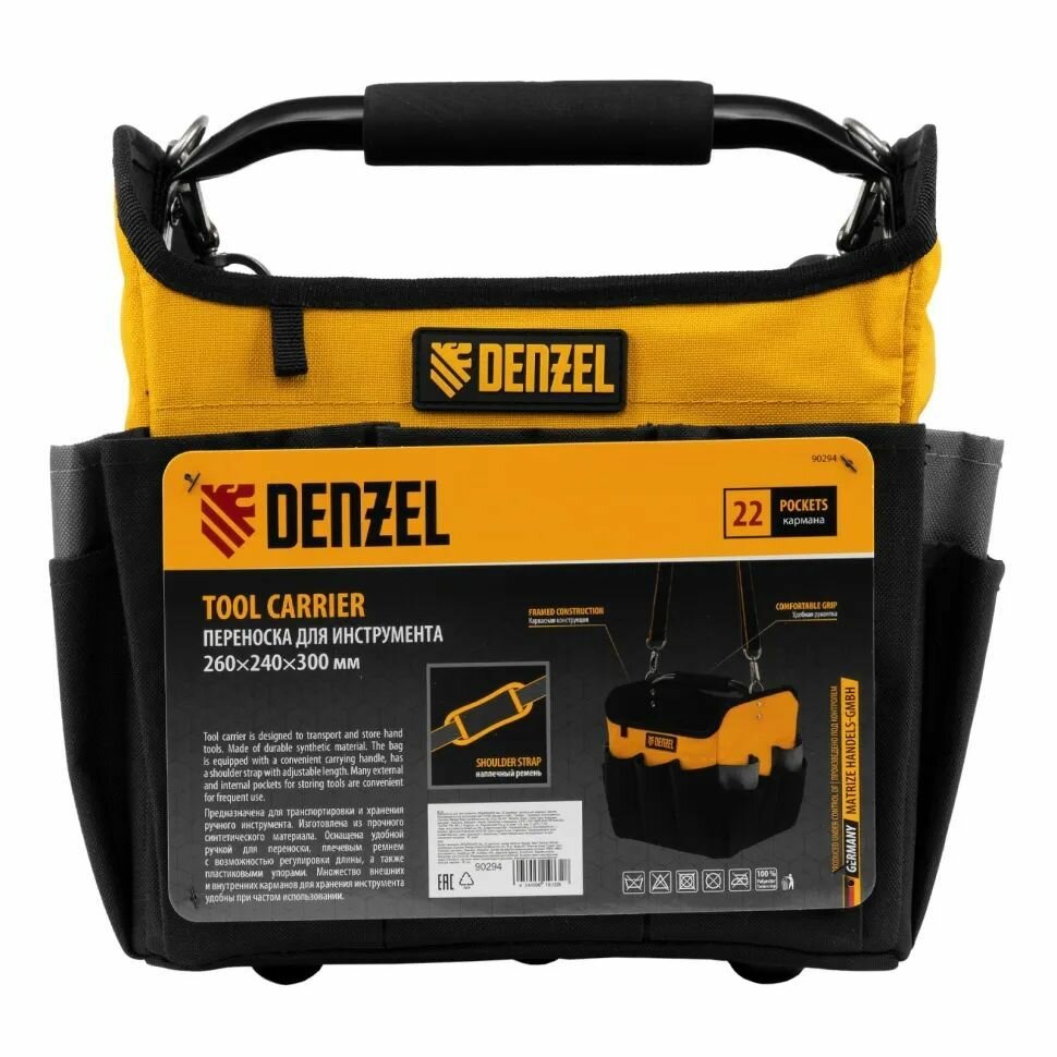СохранитьПереноска для инструмента Denzel, 22 кармана, наплечный ремень 90294 интересное: