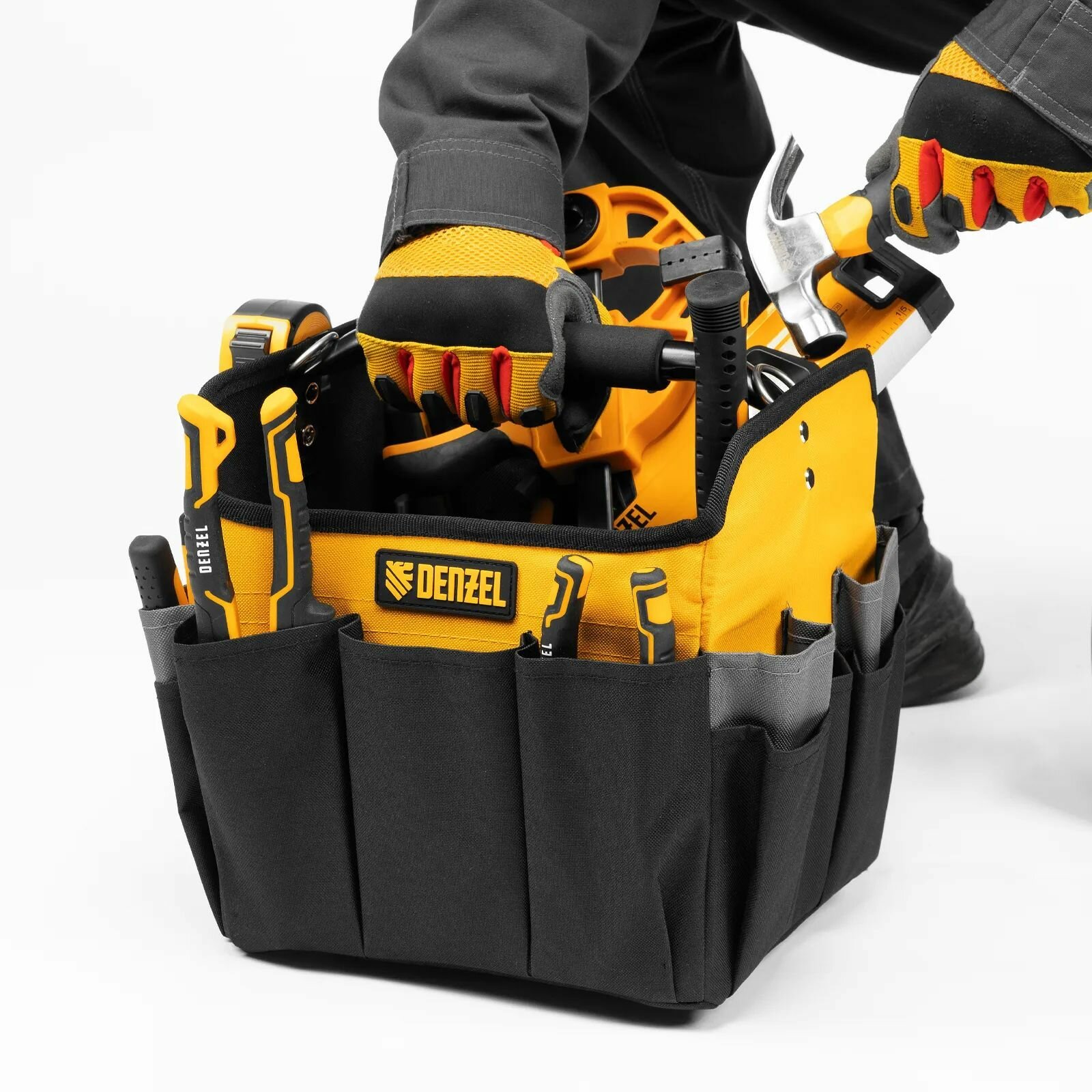 Сумка для инструмента Denzel, 20 карманов и 20 кг нагрузка, 50х24.5х30 мм, съемный органайзер и плечевой ремень, 90293