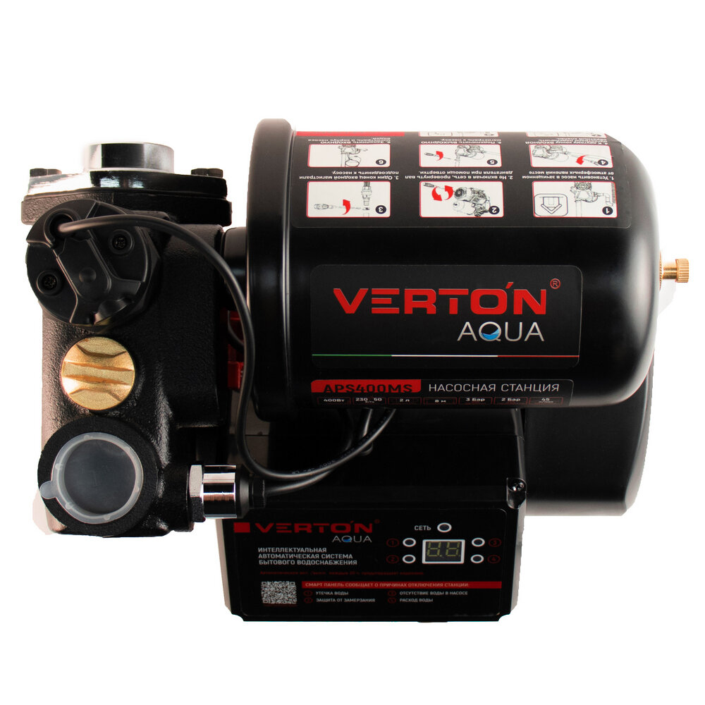 Насосная станция Verton AQUA APS400MS (400Вт, 43л/мин, 2л, гл. 8м, H 35м, вых. 1", 1.5 бар, дисплей) интересное: