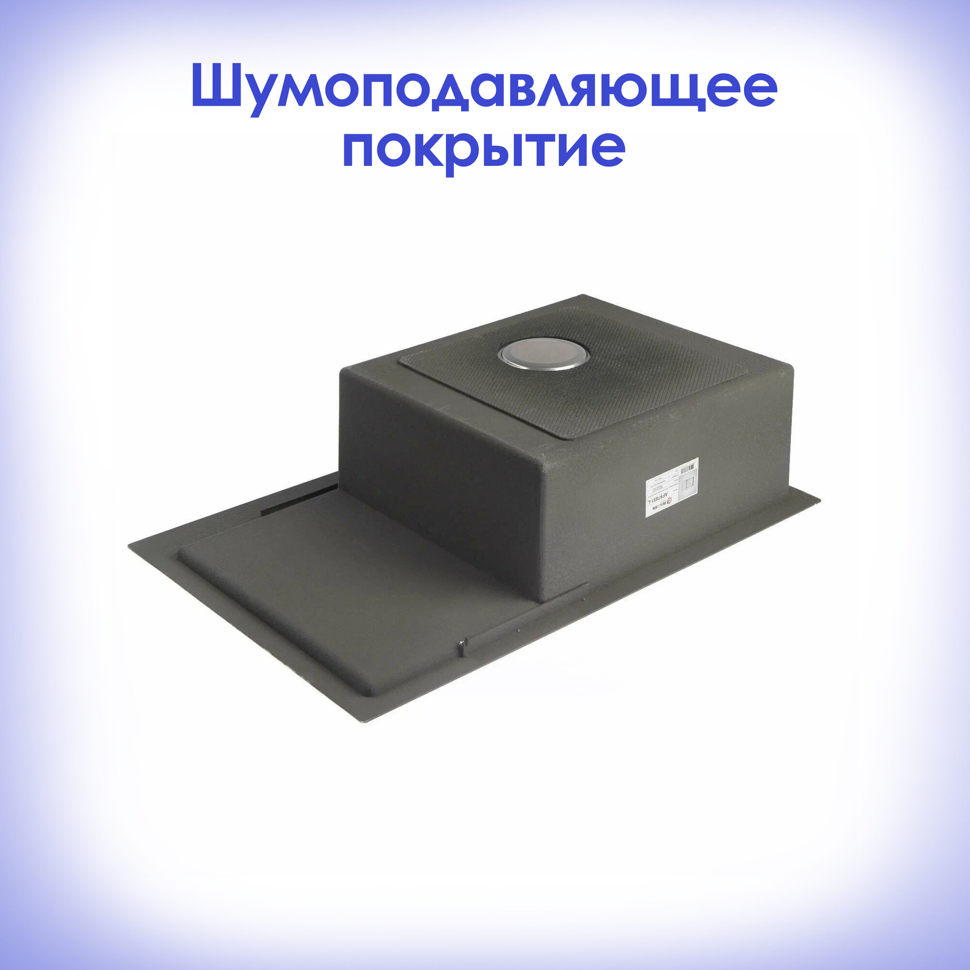 Мойка для кухни Премиум класса 58х48 Графит, нержавеющая врезная, чаша справа, 3 мм толщина, выпуск 3 1/2, с сифоном