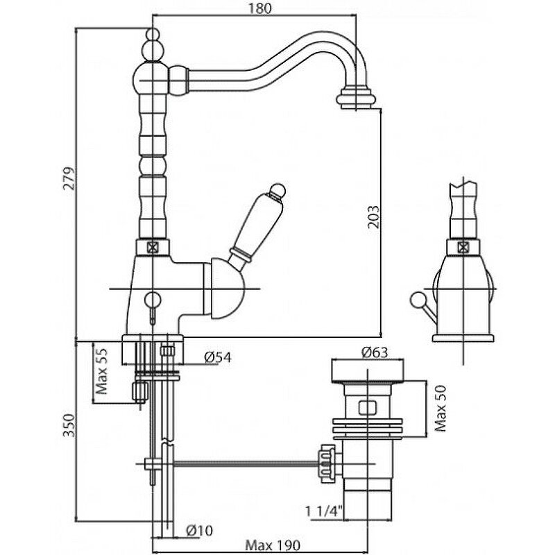 | Особенности | аэратор / донный клапан / поворотный излив |
