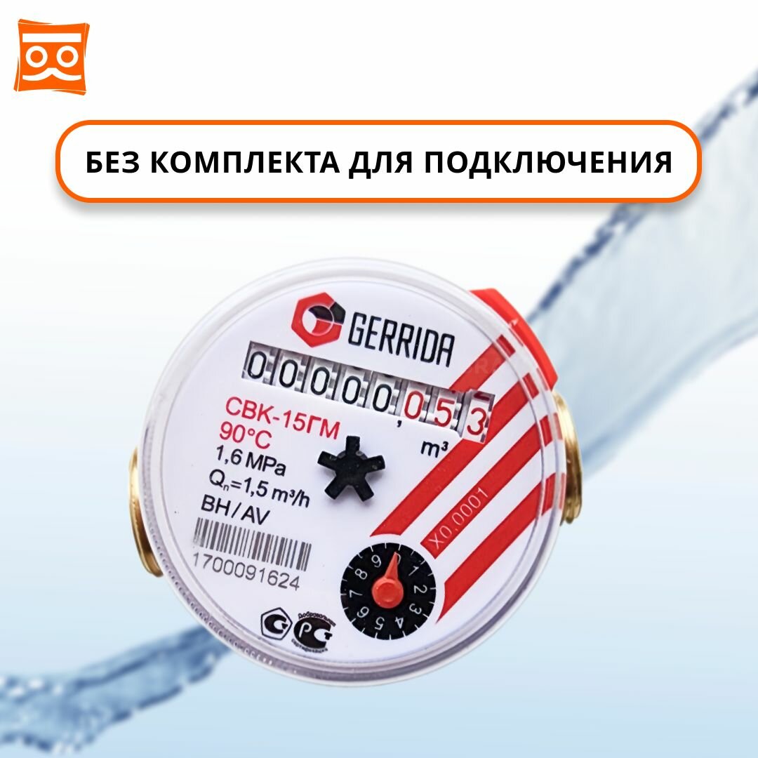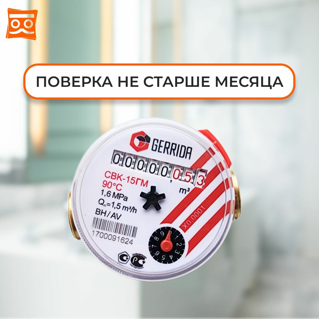 Счетчик воды Универсальный Геррида СВК-15Г, длинна 80 мм, Без Монтажного Комплекта / Gerrida, Поверка Не старше 35 дней (комплект 4шт.) интересное: