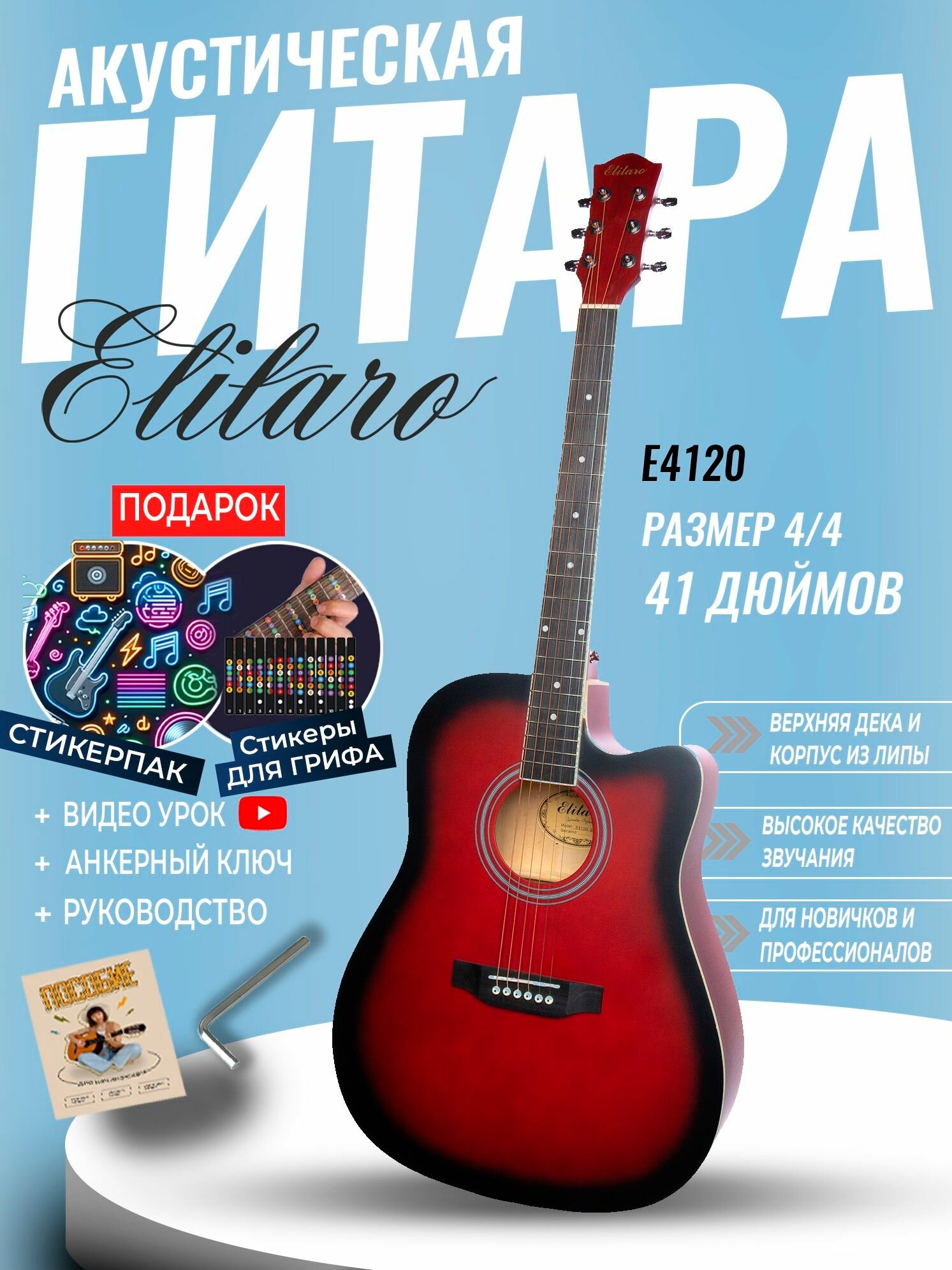 Гитара акустическая 41" Красная (Инструмент начинающего музыканта, Elitaro E4120 RDS) интересное: