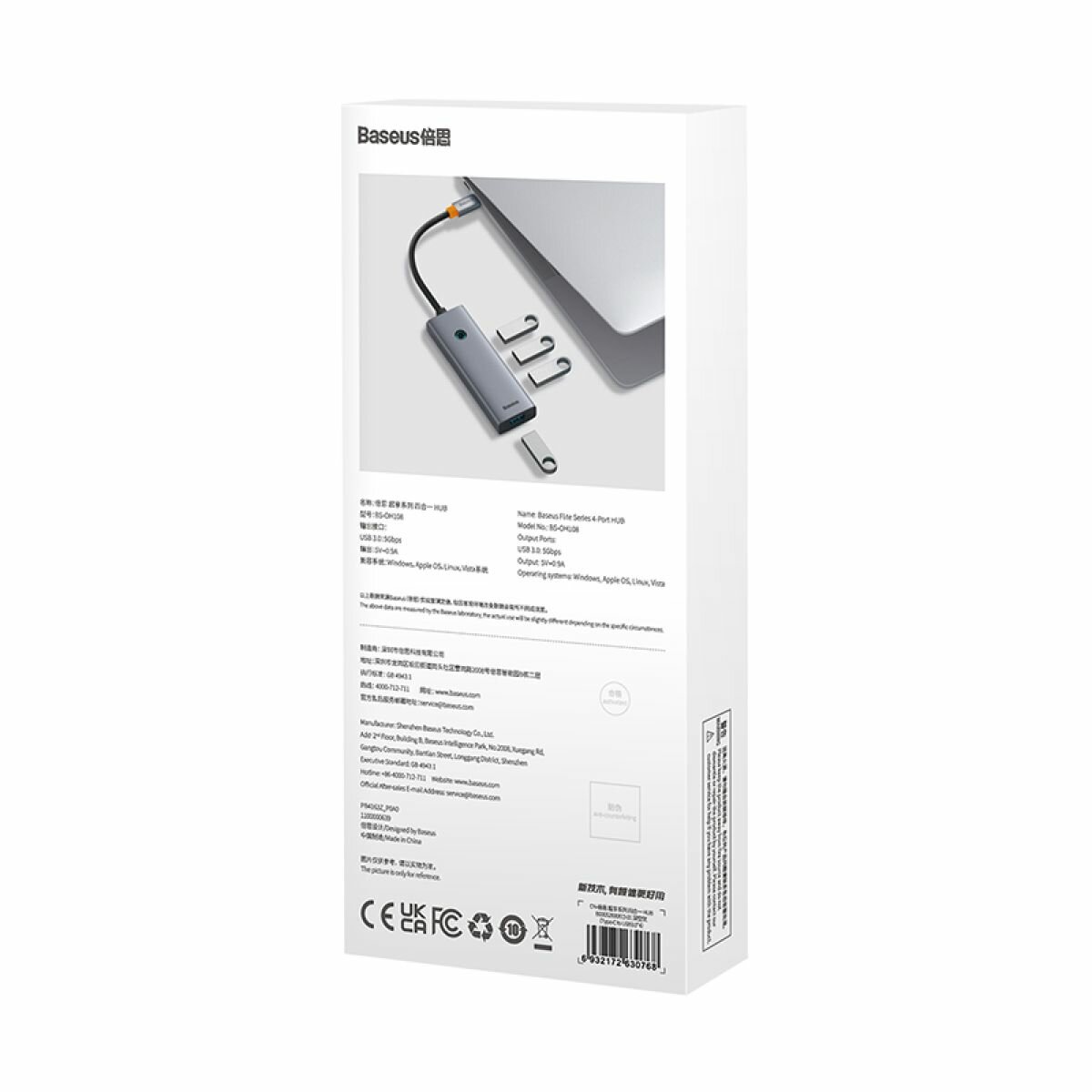 Хаб OS-Baseus Flite Series 4-Port HUB (Type-C - USB3.0*4) Серый (B0005280A813-03)