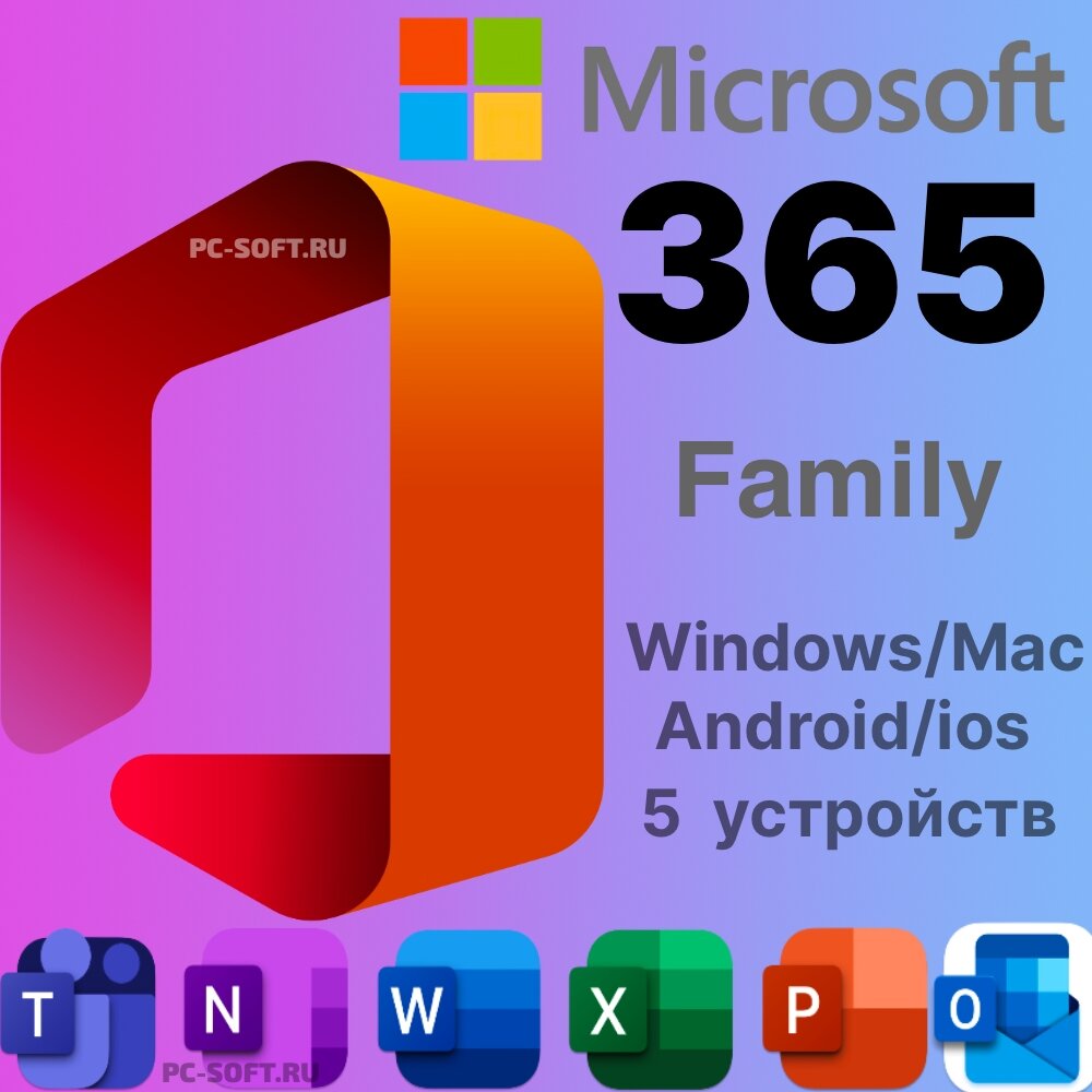 Microsoft 365 семья / 12 месяцев / Office 365, Привязка к Вашей учетной записи через другой регион) Русский язык.