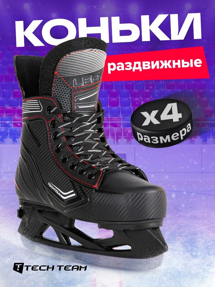 Купить Хоккейные коньки раздвижные TechTeam Legion, чёрный, р.39-42