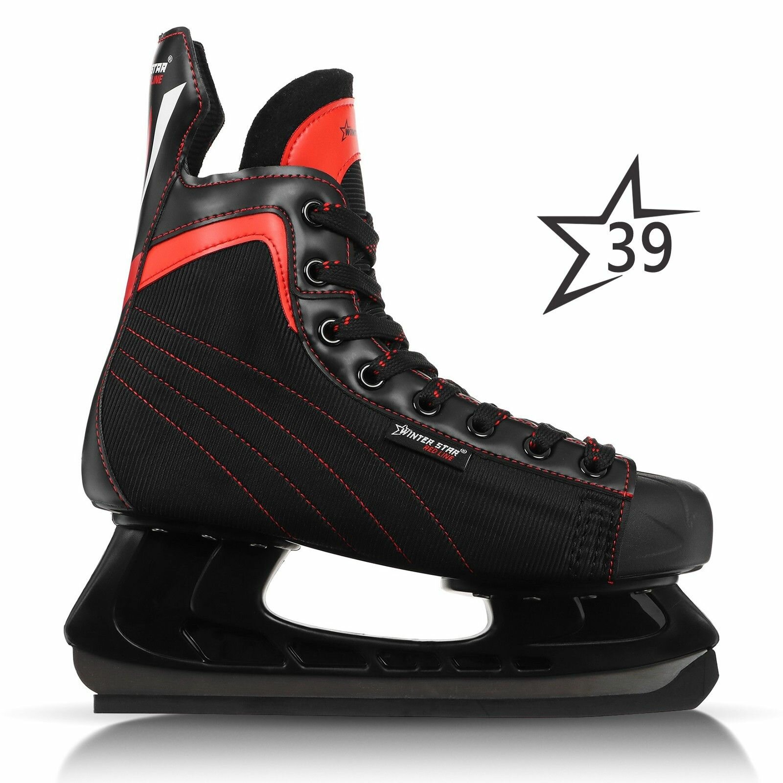 Купить Коньки хоккейные Winter Star Red Line взрослые, размер 39, пластик, лезвие из нержавеющей стали 3 мм, для катания на льду, зимних видов спорта и подвижных спортивных игр