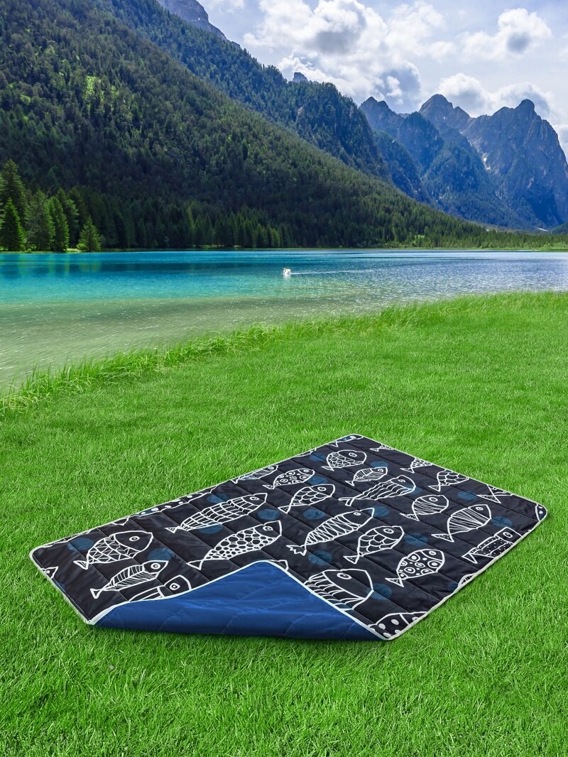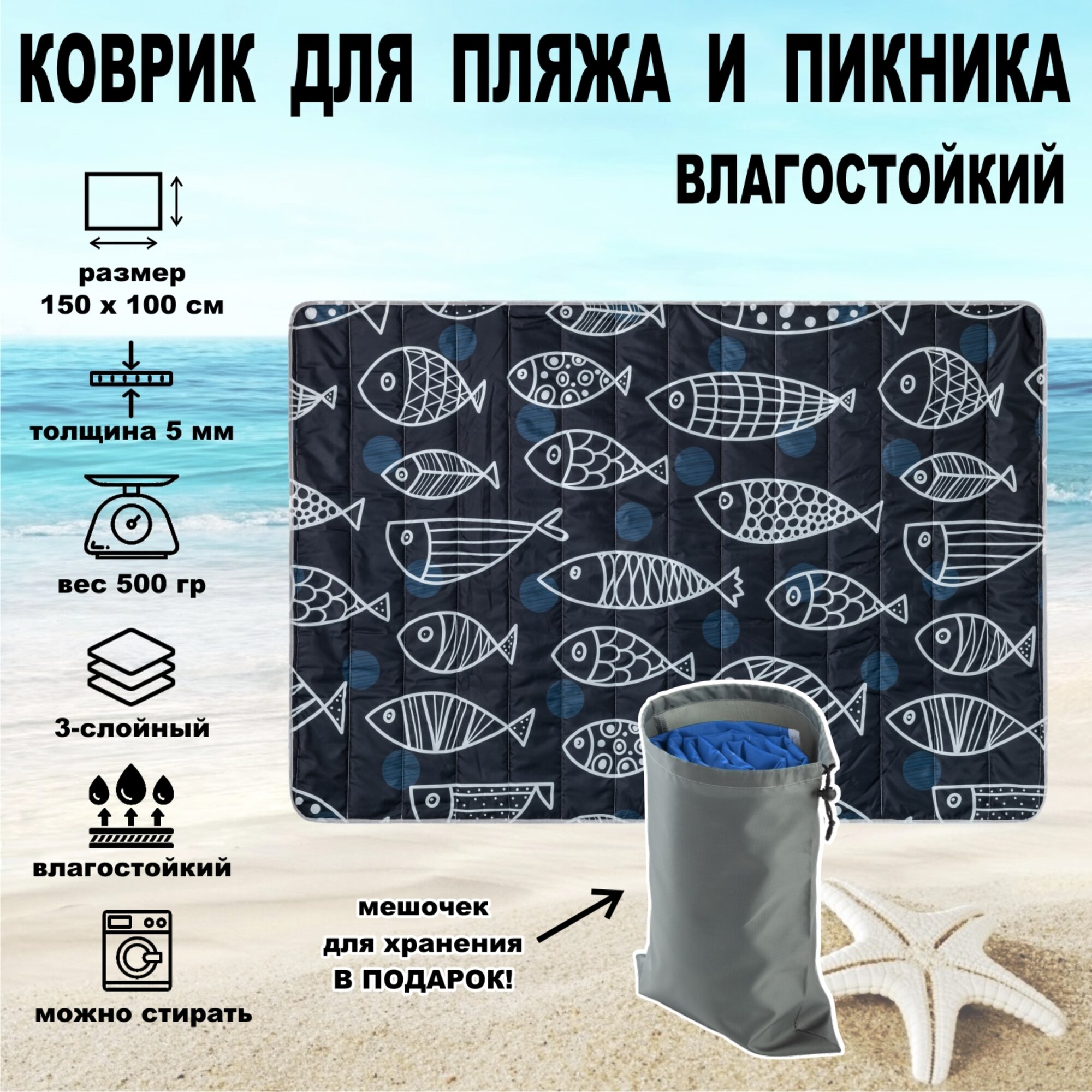 Коврик - лежак стеганый влагостойкий для пикника, пляжа"РЫБКИ НА СИНЕМ" размером 100х150см сублимационная печать интересное: