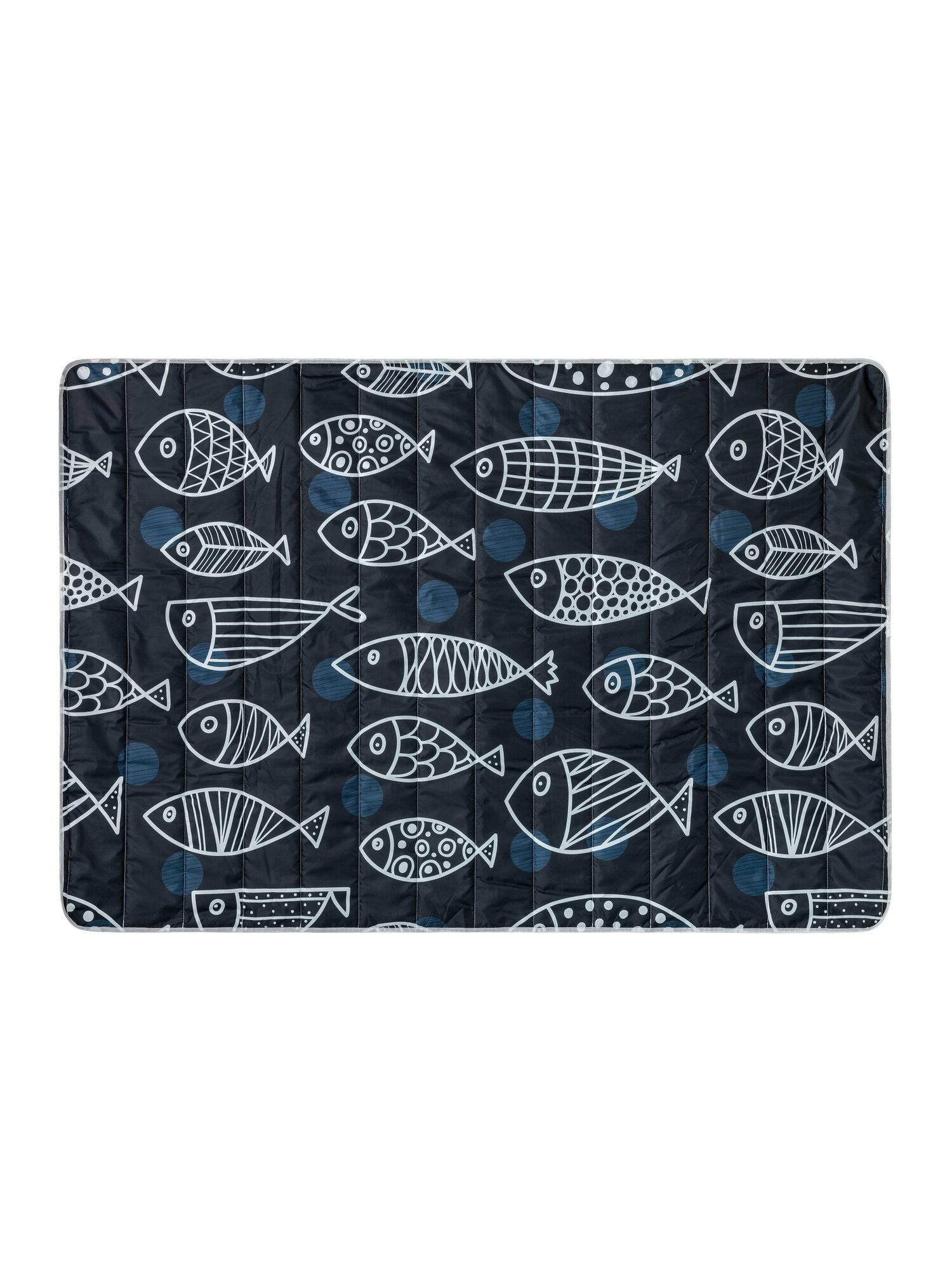 Купить Коврик - лежак стеганый влагостойкий для пикника, пляжа"РЫБКИ НА СИНЕМ" размером 100х150см сублимационная печать