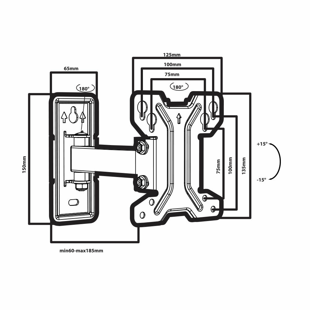 Кронштейн Kromax Tuarex ALTA-108, диагональ 10-27", нагрузка 20 кг, наклон +15/-15°, поворот 180°, чёрный интересное: