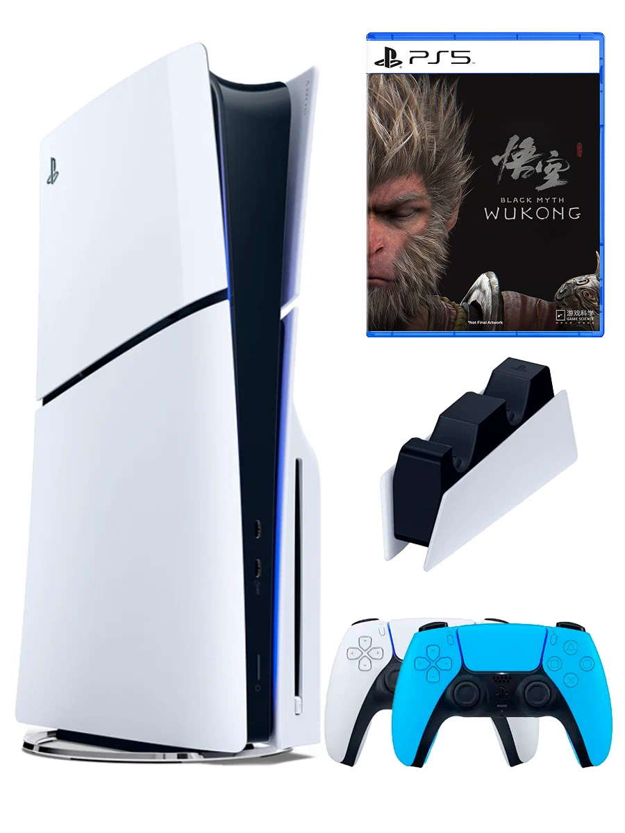 Купить PS5 (ПС5) Игровая приставка Sony PlayStation 5 Slim +2-й геймпад(голубой)+зарядное+Black Myth: Wukong, 1000ГБ