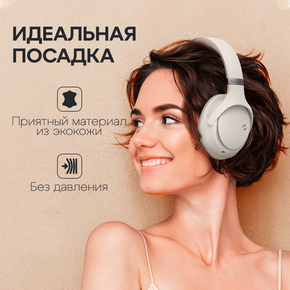 Наушники беспроводные HAVIT H655BT с микрофоном, активным шумоподавлением, увеличенным временем работы, игровые, бежевые