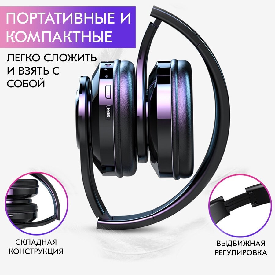 Купить Беспроводные Bluetooth полноразмерные большие складные наушники RGB с микрофоном
