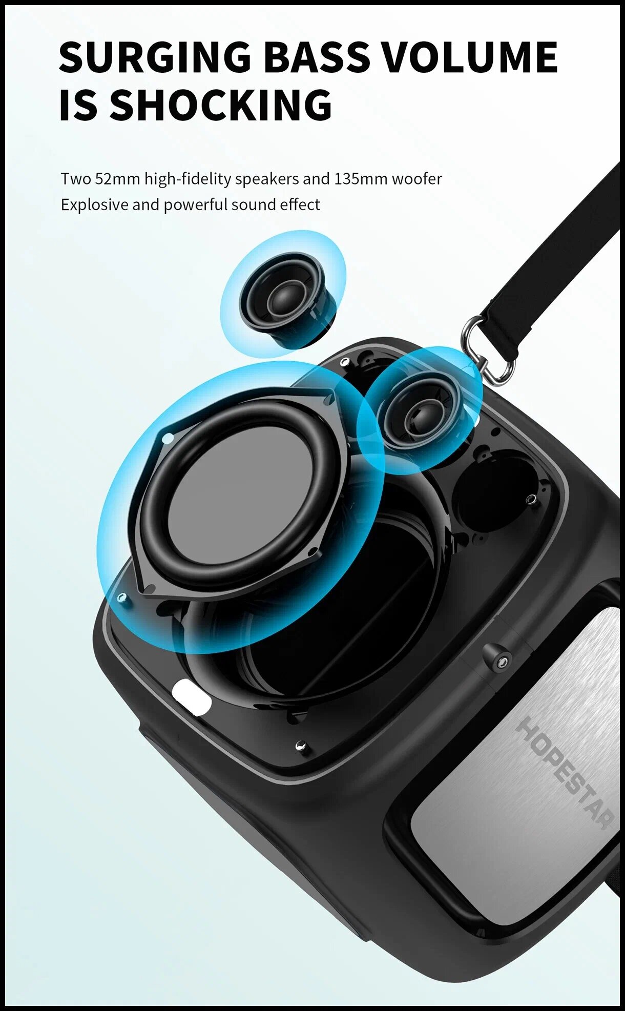 Портативная Bluetooth Колонка Hopestar Party One 80 Вт, с двумя беспроводными микрофонами/ колонка блютуз