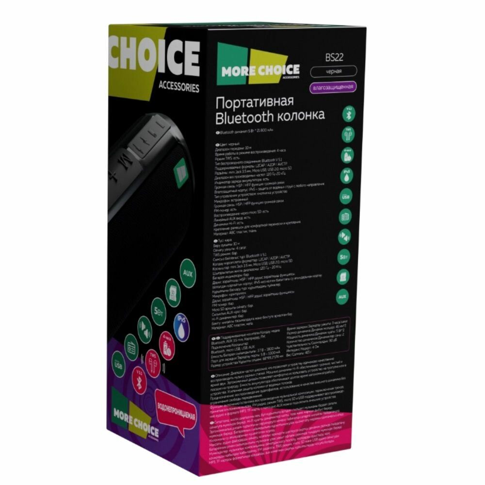 Портативная колонка More Choice BS22 10Вт TWS 1800мАч черный .