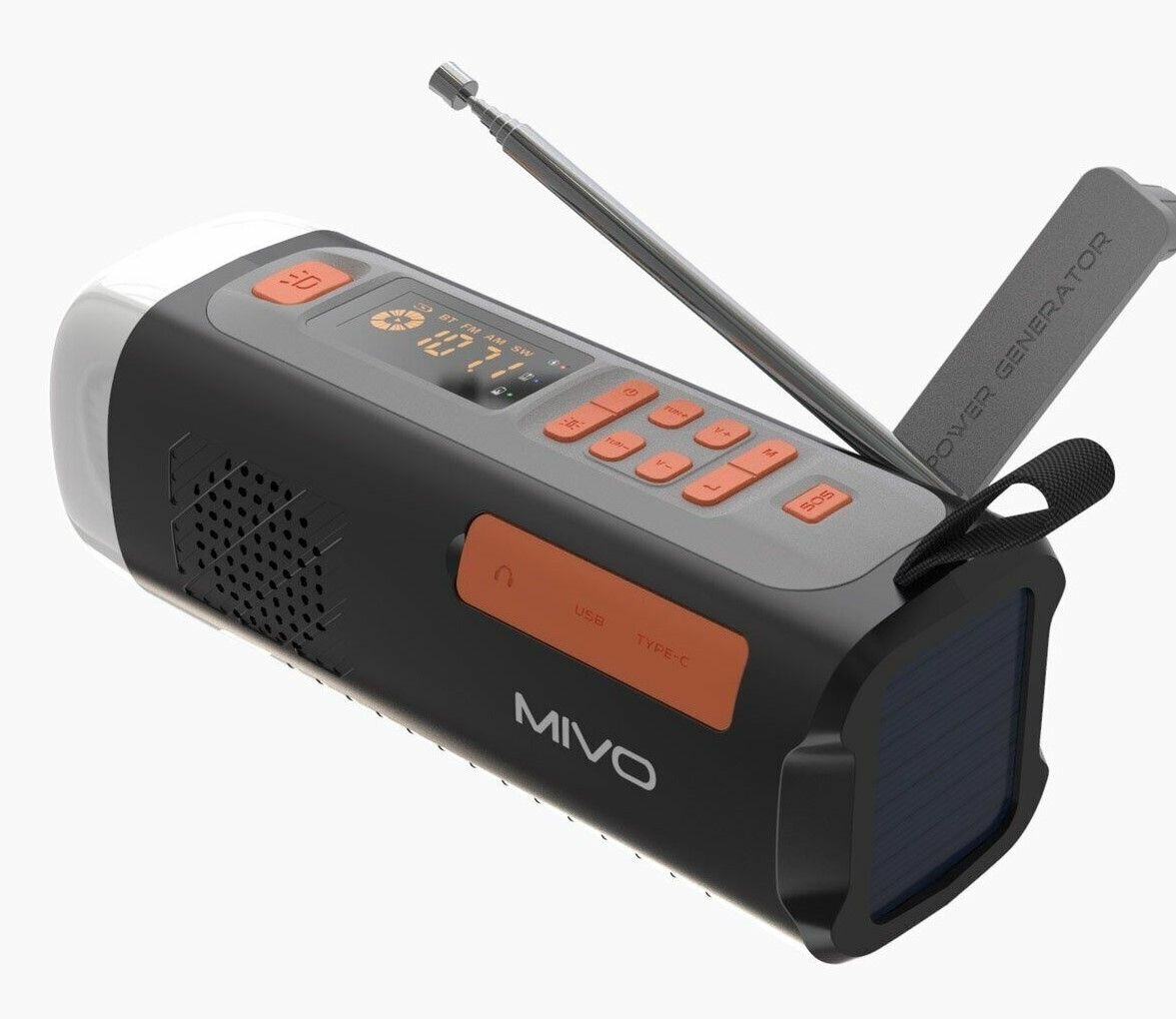Радиоприемник с Bluetooth, с солнечной панелью, power bank, динамо-машина, фонарь, Mivo MR-002