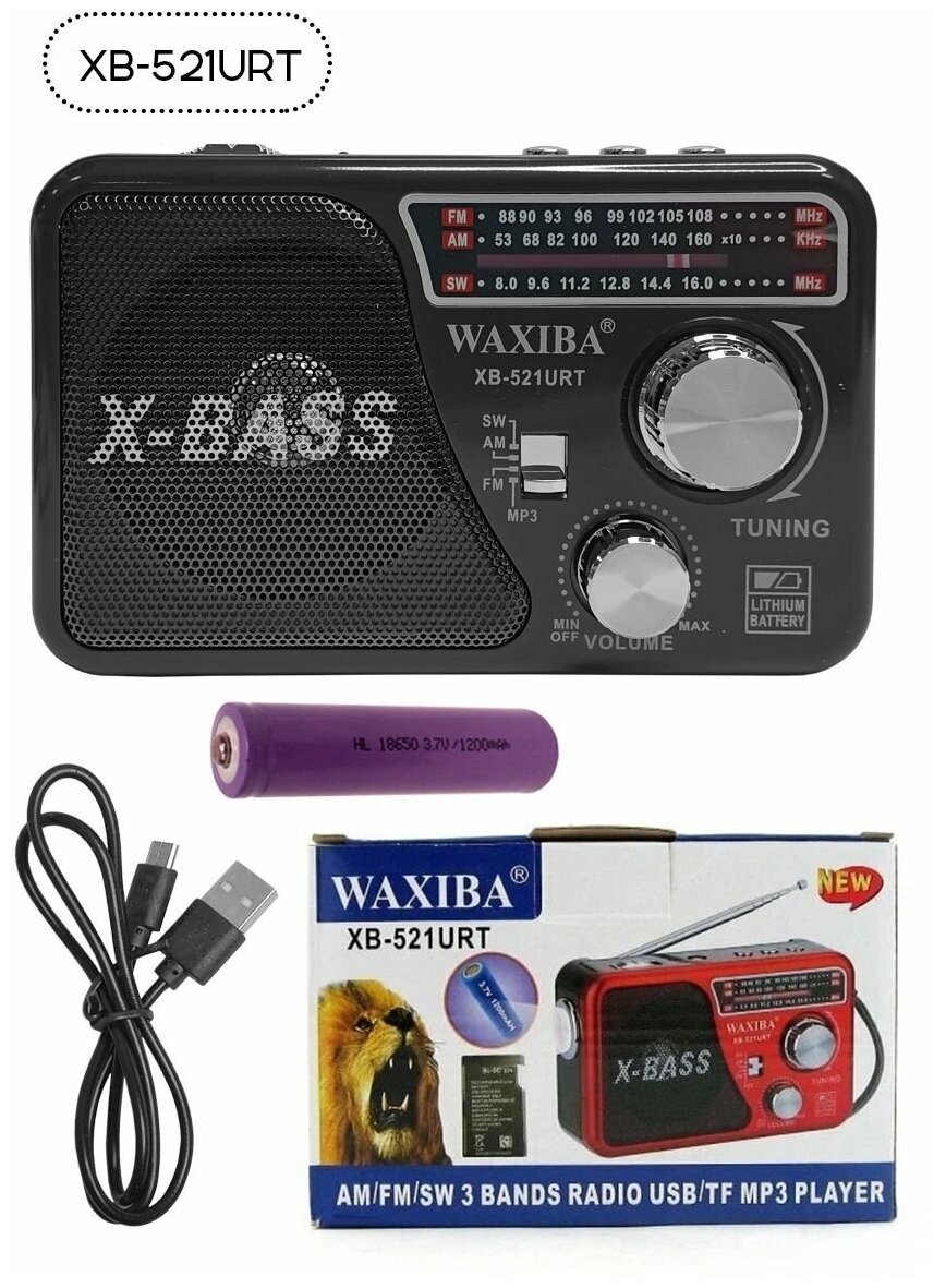 Радиоприемник цифровой Waxiba XB-521URT, портативное радио, радио колонка, черный интересное: