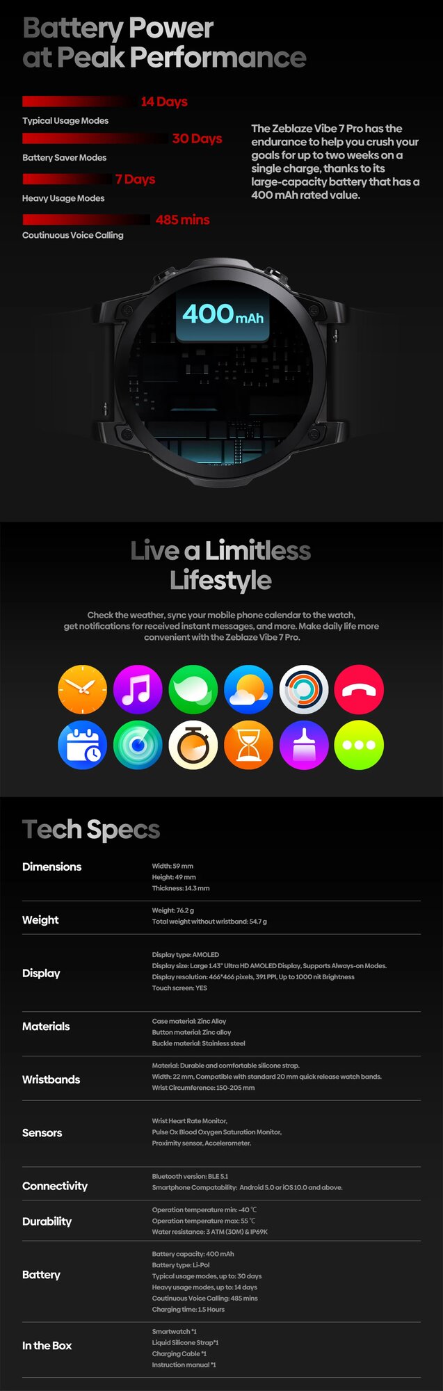 Смарт часы Zeblaze Vibe 7 Pro AMOLED, Черные