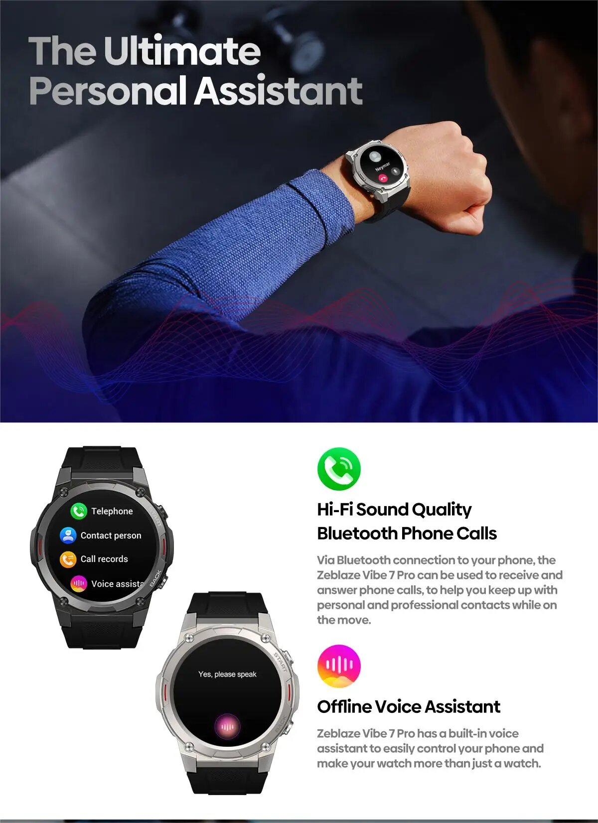 Умные часы премиум-класса с голосовым звонком ZEBLAZE VIBE 7 PRO Black Гарантия 1 год.
