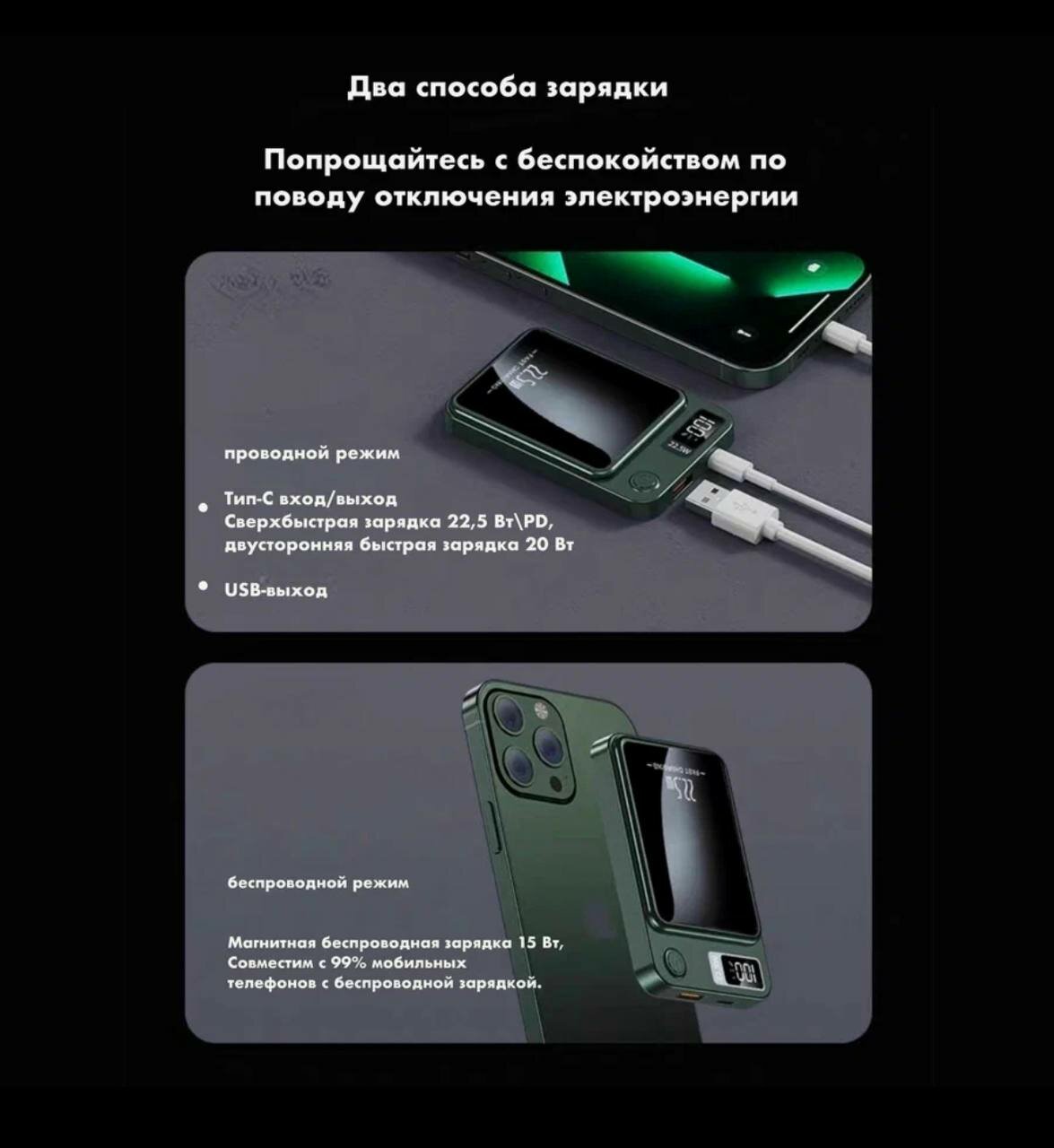 СохранитьБеспроводной Powerbank 10000mAh, MagSafe, зеленый, 20W, 10000mA, влагозащищенный интересное: