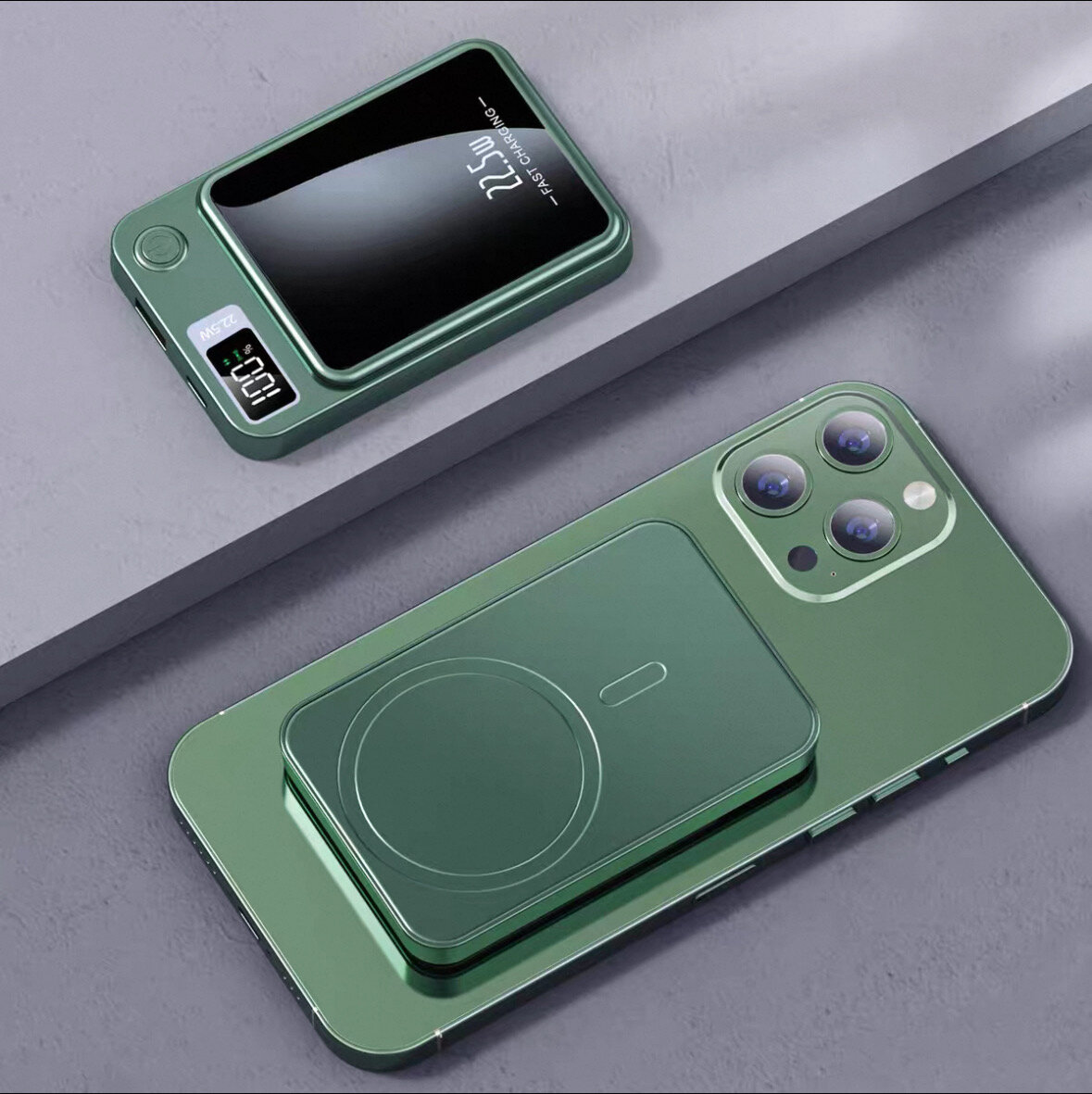Беспроводной Power bank 10000 мАч 20 Ватт MagSafe для Apple iPhone / Магнитная быстрая зарядка на Эпл Айфон / Внешний аккумулятор / Повербанк /зеленый