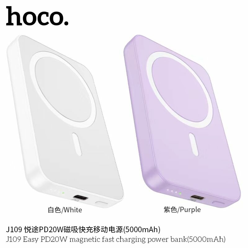 Беспроводной магнитный аккумулятор Hoco J109 Magnetic Charger, 5000 mAh, Qi15W/PD20W, Purple