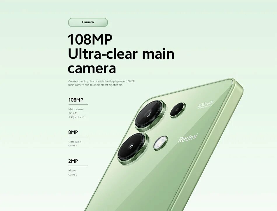 Глобальная версия смартфона Xiaomi Redmi Note 13, 128/256 ГБ Snapdragon ® Камера 685, 108 МП, 120 Гц, FHD + 6,67 дюйма, AMOLED, 33 Вт, зарядка, 8GB 256GB Green, Offical Standard-
