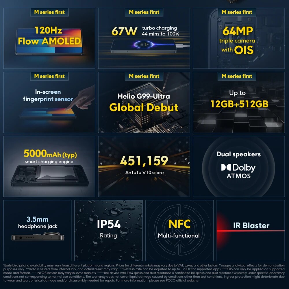 [World Premiere】POCO M6 Pro глобальная версия смартфон Helio G99 Ultra, 120 Гц, 64 мп, тройная камера с OIS 67 Вт, турбозарядка