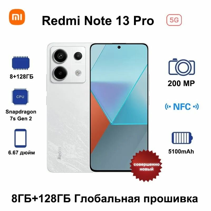 Xiaomi Смартфон Redmi Note 13 Pro 5G, Глобальное ПЗУ Поддержка русского языка + Google Play Global 8/128 ГБ, белый