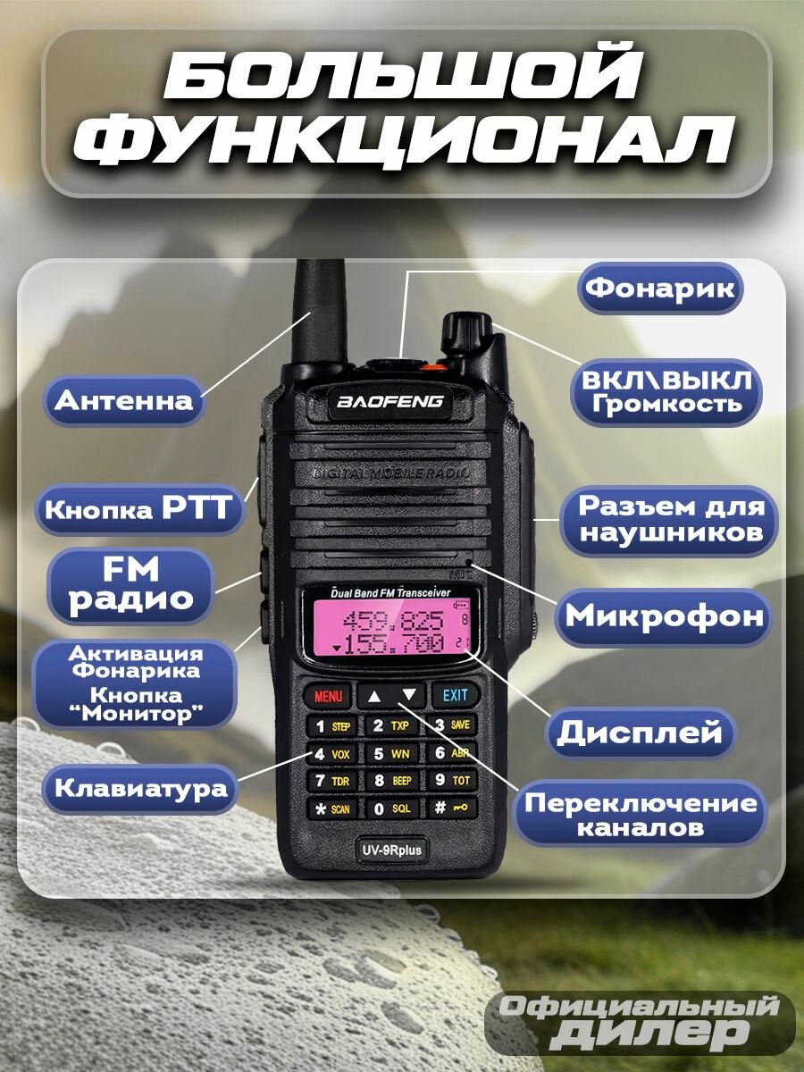 СохранитьРация Baofeng UV-9R Plus, мощность 8W, 128 каналов, 1800 мАч, IP67 интересное: