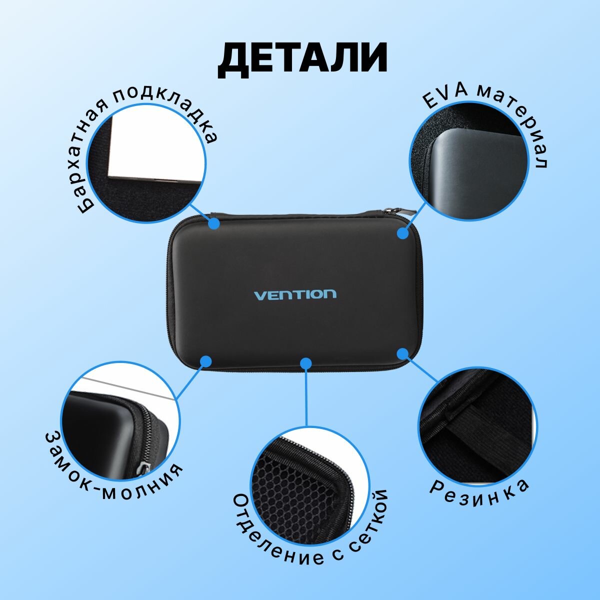 Vention Чехол для жесткого диска, SSD и HDD накопителя, кейс ударопрочный, футляр для проводов, зарядки, арт. KBKB0