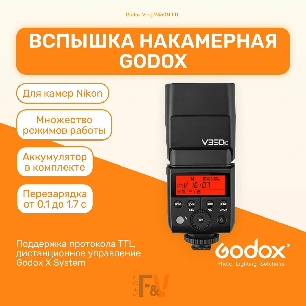 Вспышка накамерная Godox Ving V350N TTL аккумуляторная для Nikon для мобильной съемки, свадебной съемки, для репортажей, для путешествий интересное: