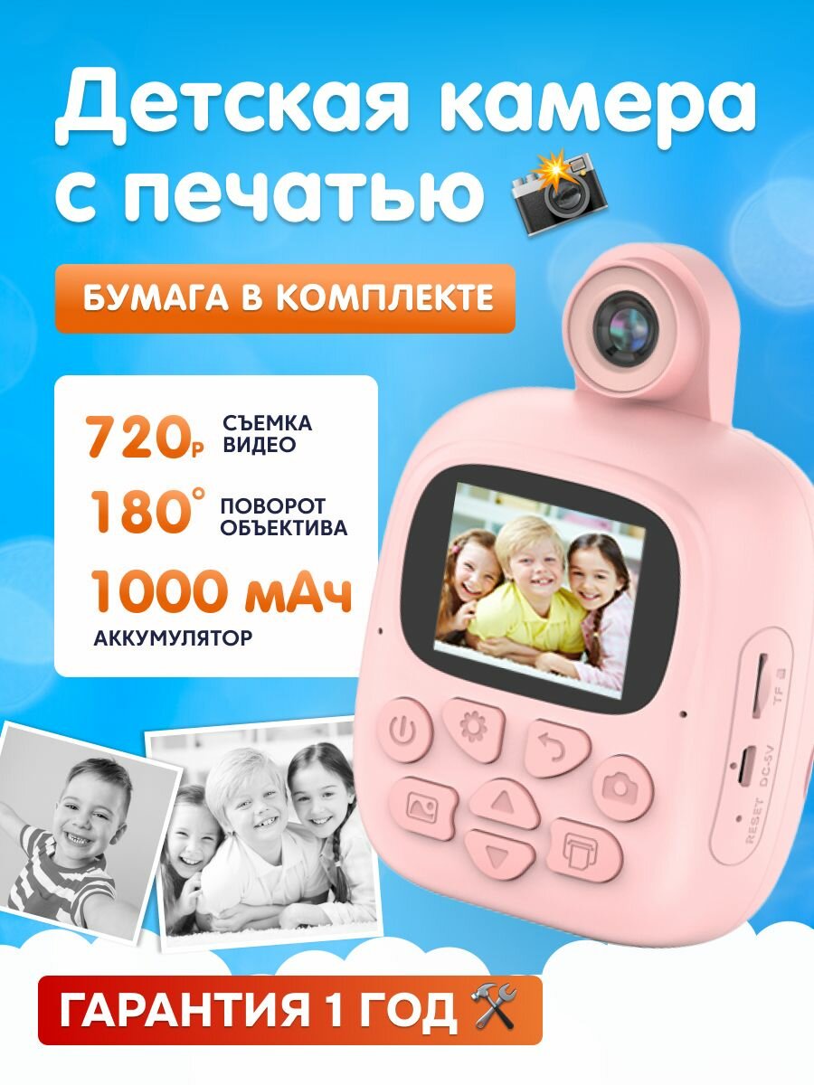 Детская камера c печатью фотографий Kid Joy Print Cam 2' HD экран, 1 линза, 1000мАч , угол обзора 180 градусов (P18) русская инструкция, розовая интересное: