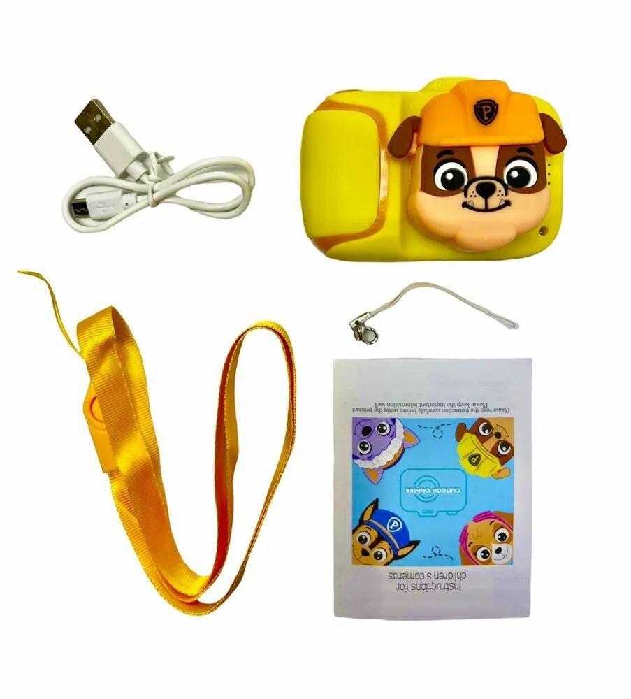Купить Фотоаппарат детский цифровой Щенячий Патруль Крепыш, 3 в 1 с картой памяти microSD на 8 Gb и ударопрочным чехлом, желтый, оранжевый