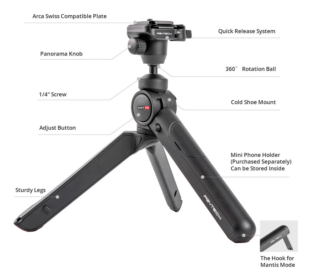 Штатив Pgytech MantisPod 2.0 (21см/2кг/315г) интересное: