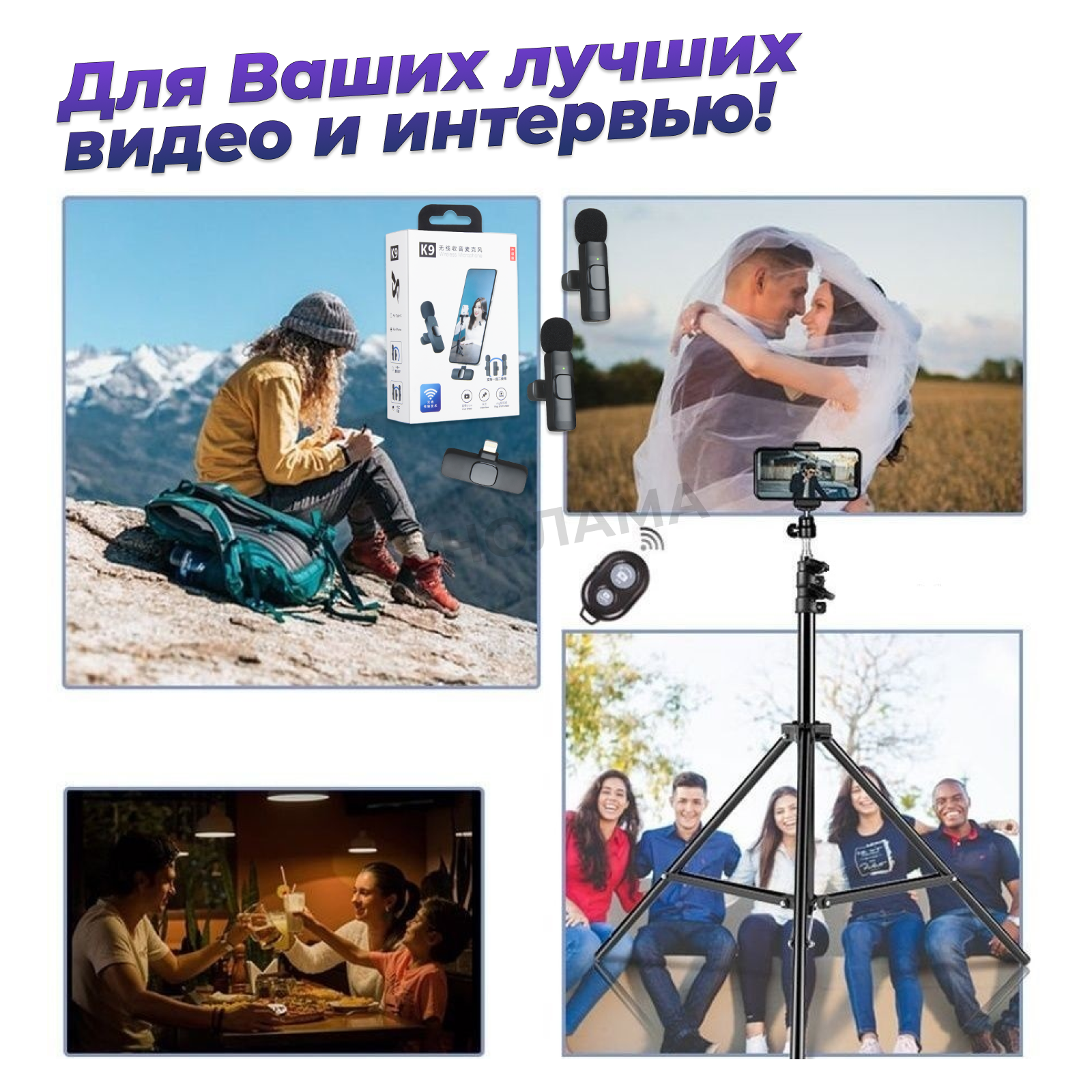 Штатив с держателем телефона + 2 микрофона беспроводных для шортс рилс (версия AUX) интересное: