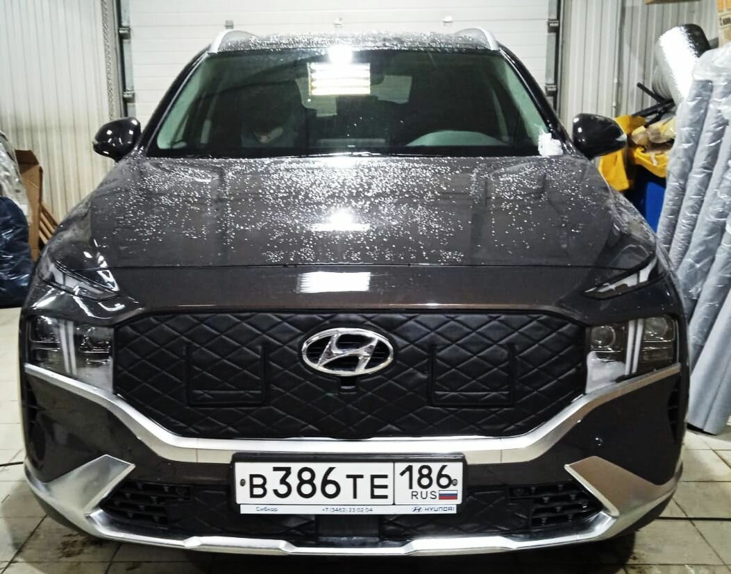 Купить Утеплитель радиатора для Hyundai Santa Fe 2020 -н. в. IV Рестайлинг Камера, Кармашки Без радара.