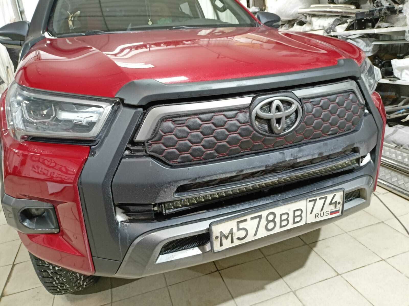 Купить Утеплитель радиатора для Toyota Hilux Black Onyx 2020 н. в. VIII Рестайлинг (Тойота Хайлюкс) Комплект 3 детали Установка на крючки