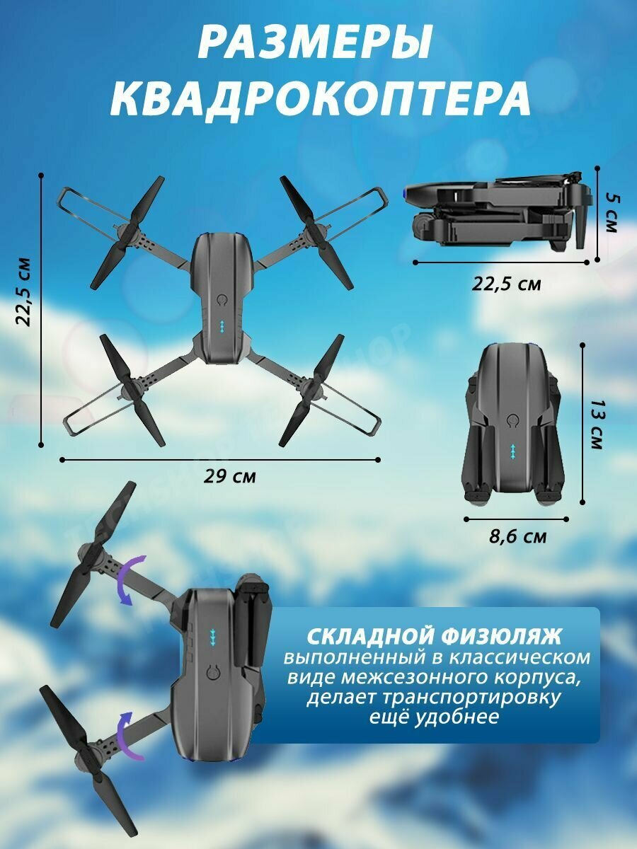 Ниже Вы можете прочитать отзывы на Квадрокоптер с камерой E88 Pro с 3-мя аккумуляторами, 2 камеры (4К, HD), дрон с камерой на пульте для взрослых, коптер детский черный, ознакомится с подробными характеристиками, посмотреть интересные обзоры и фотографии на Квадрокоптер с камерой E88 Pro с 3-мя аккумуляторами, 2 камеры (4К, HD), дрон с камерой на пульте для взрослых, коптер детский черный.