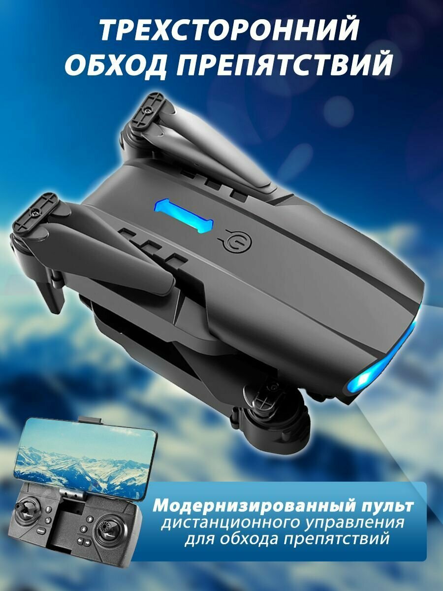 Квадрокоптер с камерой E88 Pro с 3-мя аккумуляторами, 2 камеры (4К, HD), дрон с камерой на пульте для взрослых, коптер детский черный интересное: