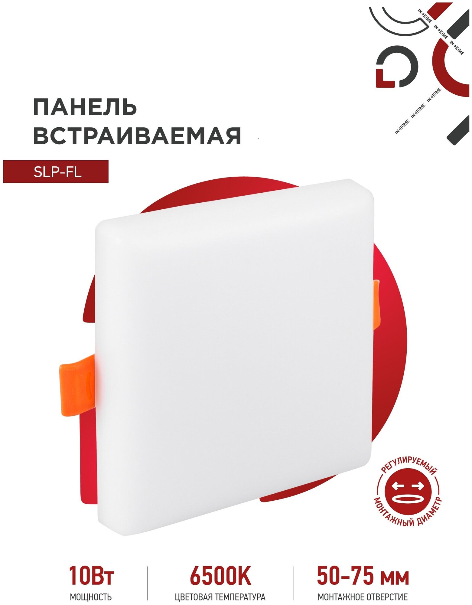 Панель светодиод встраив безрам 10Вт 230В 6500К 900Лм 100мм с рег.монтаж. 50-75 SLP-FL белая IP20 IN HOME