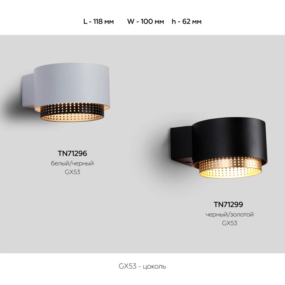 Настенный светильник со сменной лампой TN71296 WH/BK белый/черный GX53 max 12W 95*62*120