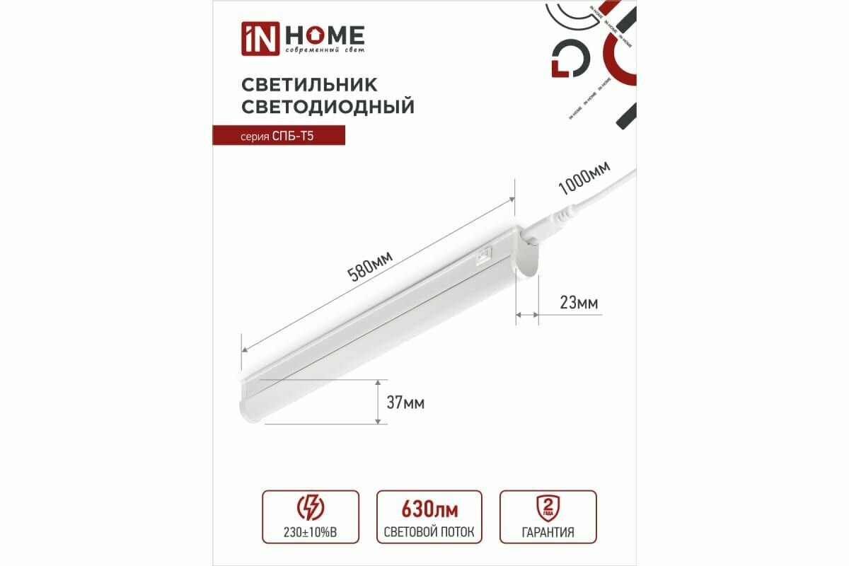 Линейный светильник IN Home СПБ-Т5 7Вт 4000К 230В 630лм IP40 600мм 4690612003030