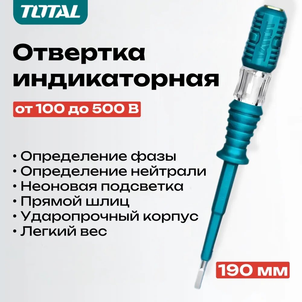 Отвертка индикаторная AC 100-500V, SL 4x190mm TOTAL интересное: